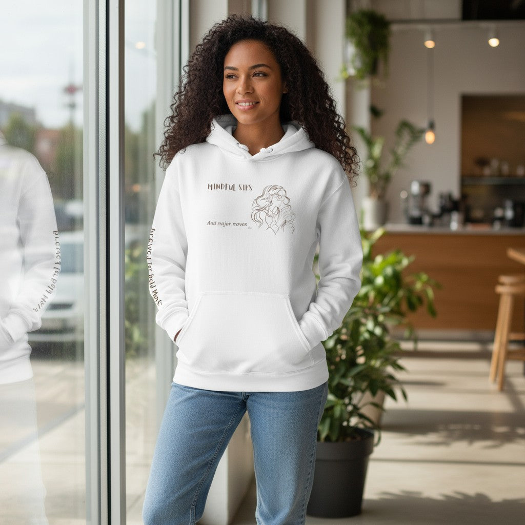 This hoodie is for the woman who starts her day with intention and finishes it with impact. Crafted from a heavyweight cotton blend, it delivers cozy comfort with a confident edge—perfect for slow mornings, strong brews, and strategic slay. With a roomy kangaroo pocket and adjustable hood, it’s built for both chill and hustle.